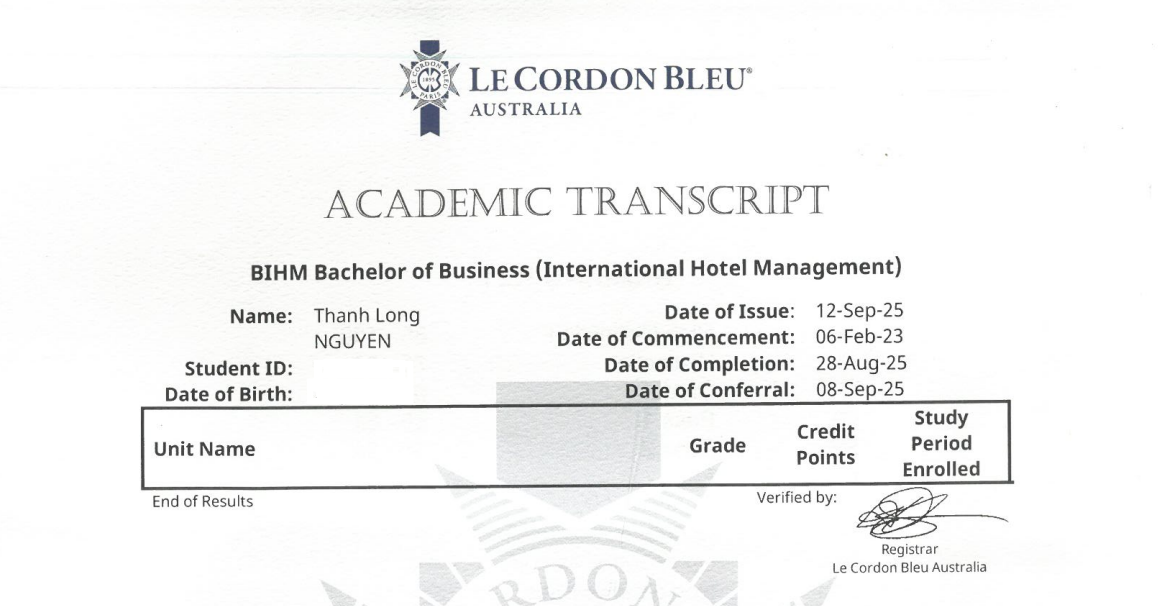 Với Visa 500, Thành Long đã lựa chọn Le Cordon Bleu là điểm đến.